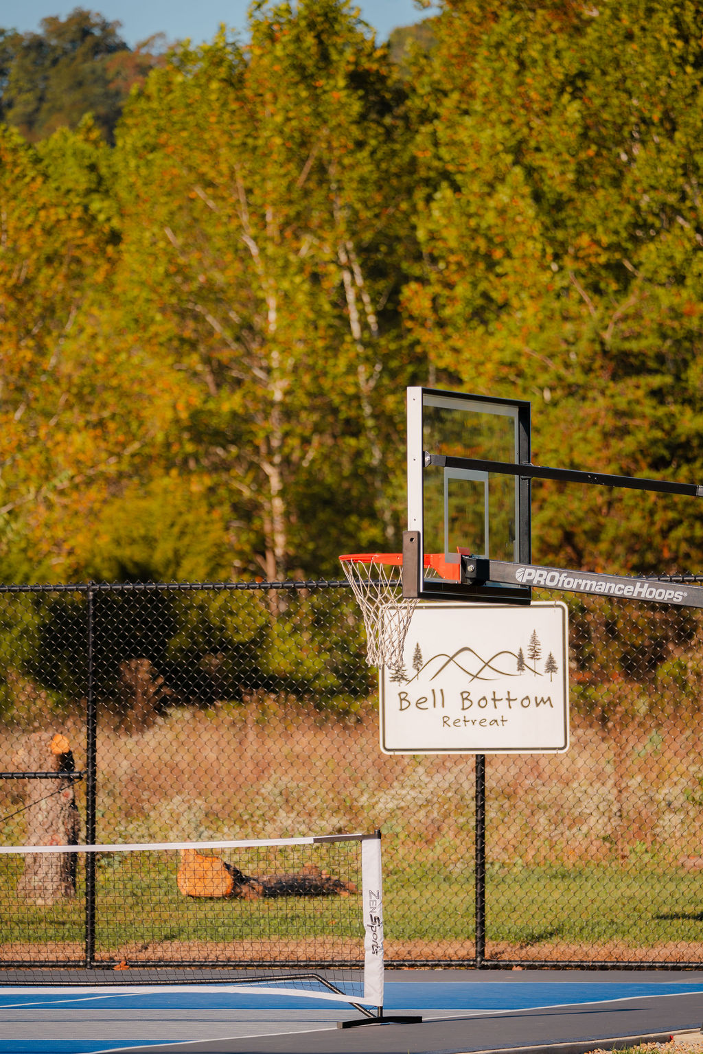 The Community Pavilion at Bell Bottom Retreat is a peaceful shared space designed for guests to enjoy the outdoors. It features picnic tables, comfortable seating, hammocks, yard games, and waterfront access with a walk-down path to the shared beach area. It’s also just steps from our multi-use sport court, complete with basketball and pickleball setups for casual fun.